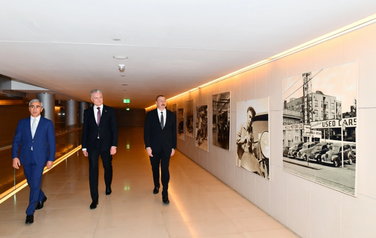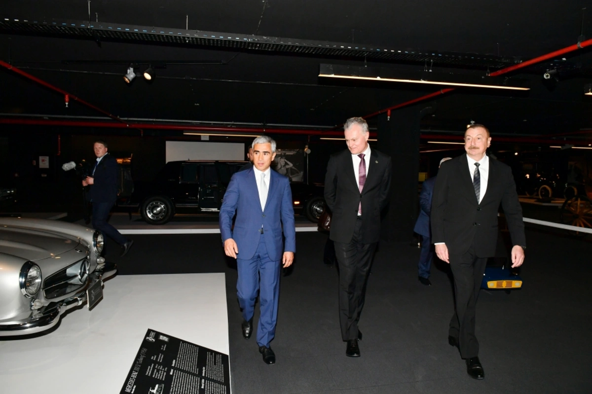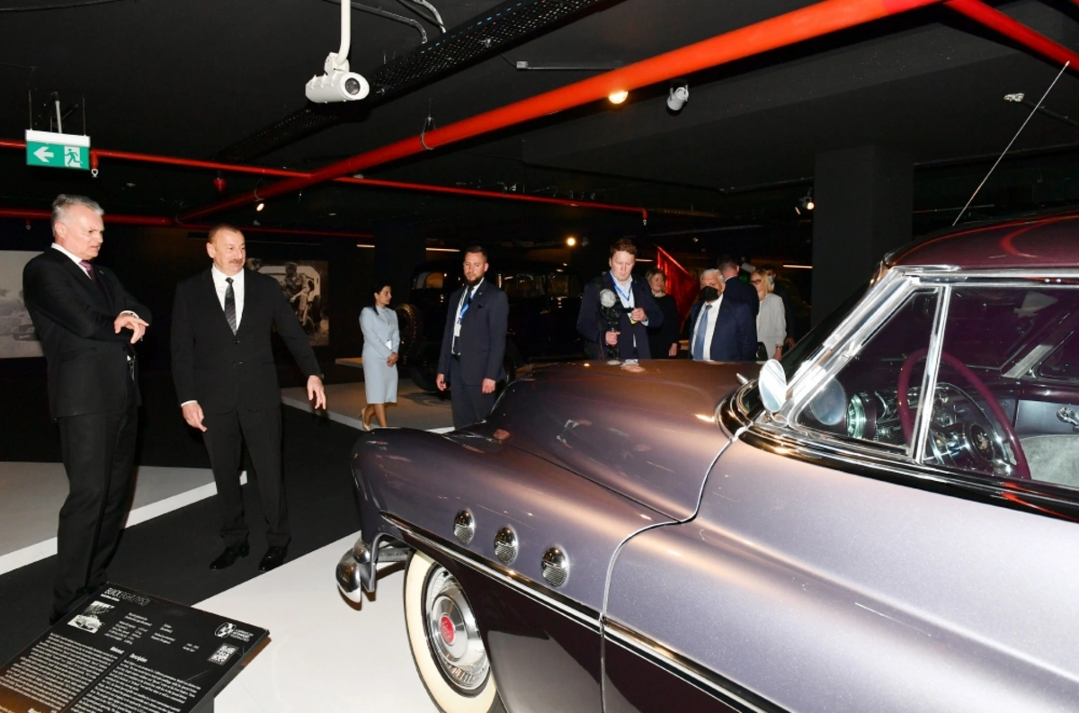 После церемонии подписания азербайджано-литовских документов главы государств ознакомились в Центре Гейдара Алиева с выставкой классических автомобилей.