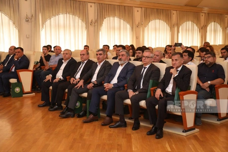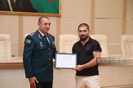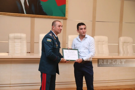 Как сообщает Report, участникам мероприятия было передано поздравление начальника ГПС генерал-полковника Эльчина Гулиева.