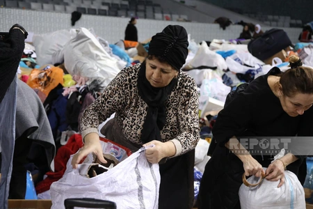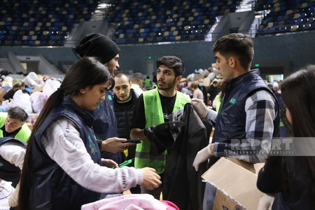 Как сообщил побывавший в Спортивно-концертном комплексе имени Гейдара Алиева сотрудник Report, собранная помощь сортируется волонтерами, упаковывается, загружается в машины и отправляется в братскую страну.