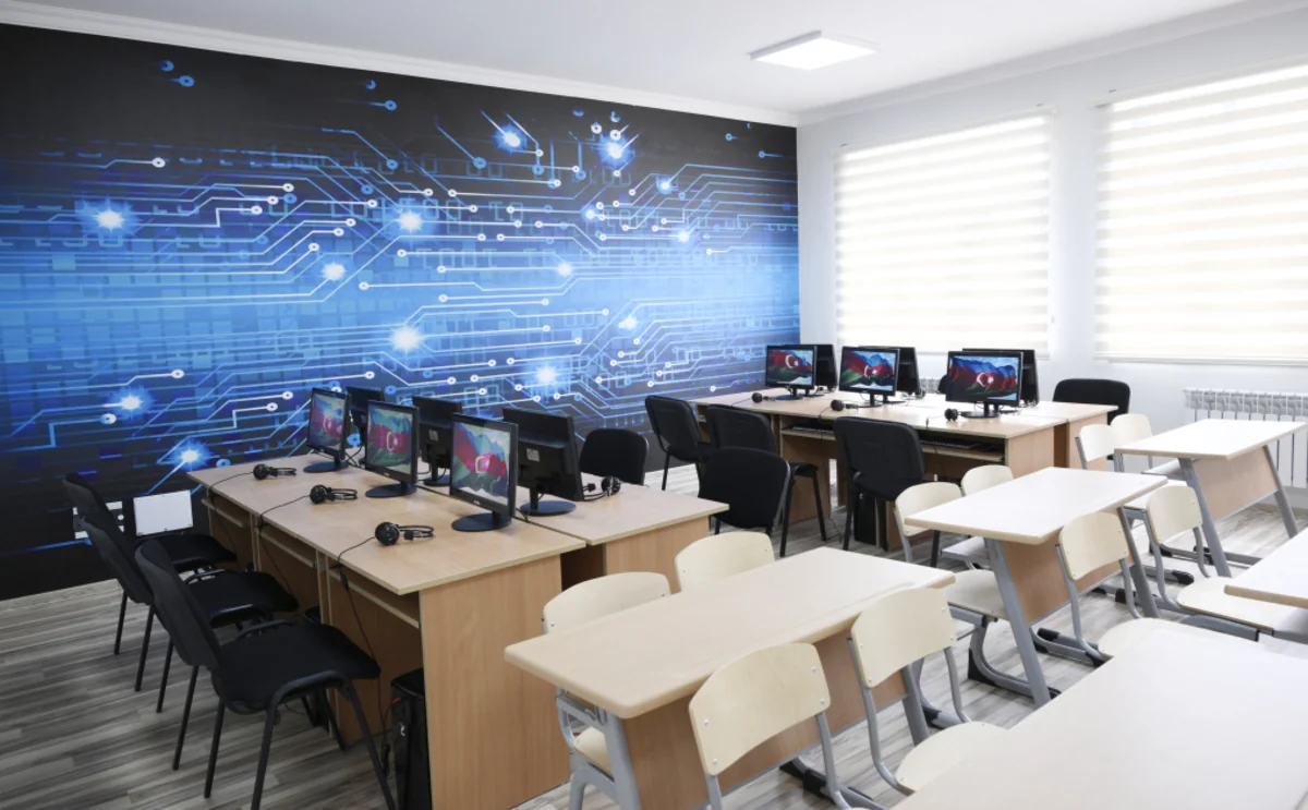 Отмечено, что здесь имеется 56 классных комнат, лаборатории по физике, химии и биологии, кабинеты информатики, военной, медицинской подготовки и труда. В школе также имеются актовый, спортивный залы и открытая спортивная площадка.