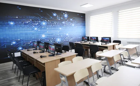 Школа оснащена необходимой мебелью и оборудованием, предметными кабинетами и лабораториями с наглядными пособиями.