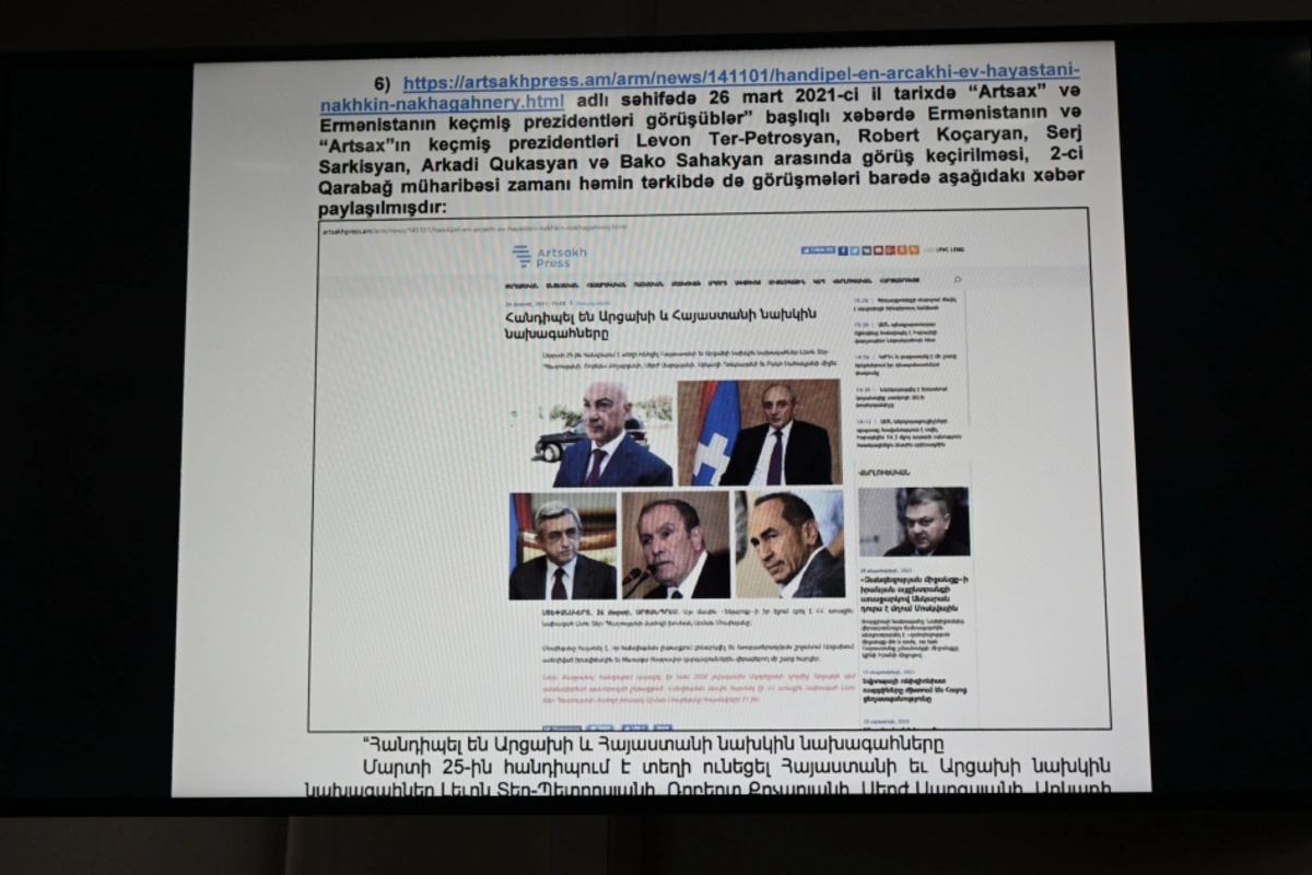 В суде было исследовано очередное доказательство - документ, касающийся встречи, состоявшейся 20 сентября 2022 года между гражданином Армении Рубеном Варданяном (в настоящее время обвиняемым в Азербайджане по множеству уголовных дел), Аркадием Гукасяном и Бако Саакяном. Во время встречи обсуждался ряд вопросов, включая так называемую «безопасность» самопровозглашенного режима, «сохранение Карабаха как армянской земли» и его «развитие».
