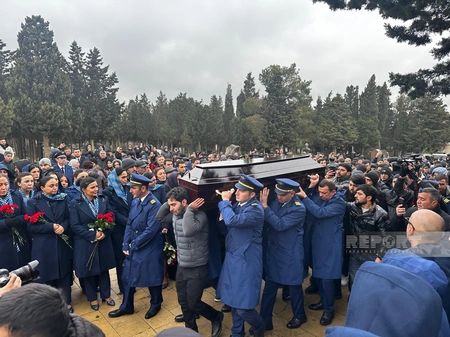 Как сообщает Report, ранее в Международном аэропорту Гейдар Алиев прошла церемония прощания с капитаном корабля Игорем Кшнякиным, пилотом Александром Кальяниновым и бортпроводницей Хокюмой Алиевой.