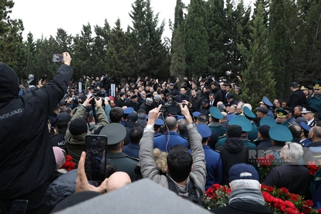 На II Аллее почетного захоронения в Баку начались похороны членов экипажа пассажирского самолета авиакомпании AZAL, потерпевшего крушение при выполнении рейса Баку-Грозный.