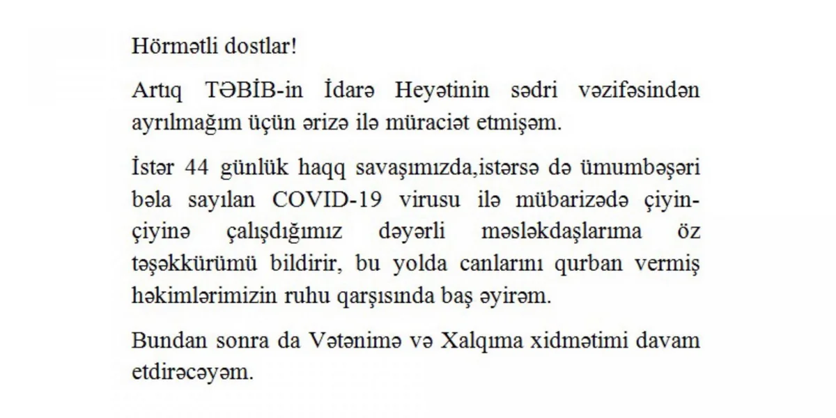 Я написал заявление об уходе с должности председателя правления TƏBİB.