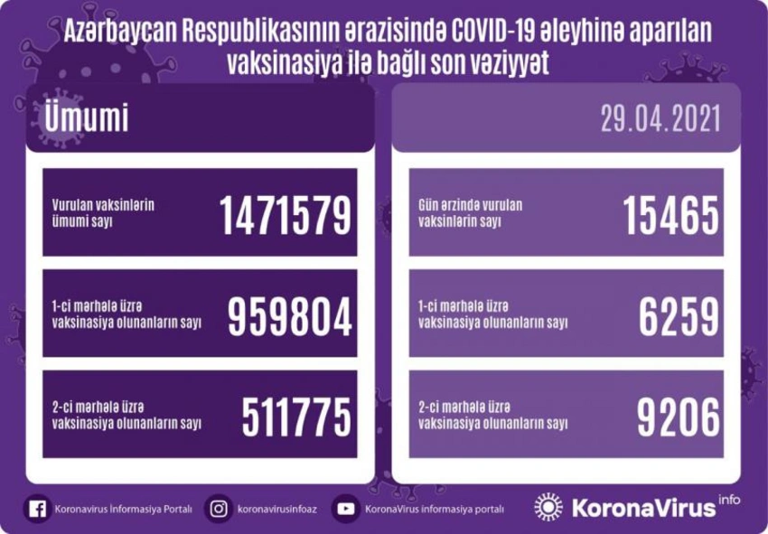 В Азербайджане сегодня вакцинировано 15 465 человек.