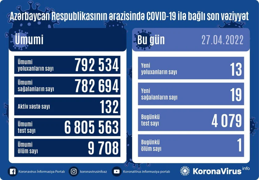 На сегодняшний день в стране выявлено 792 534 факта заражения COVID-19, из них вылечились 782 694 граждан, 9 708 скончались, активно больных - 132.