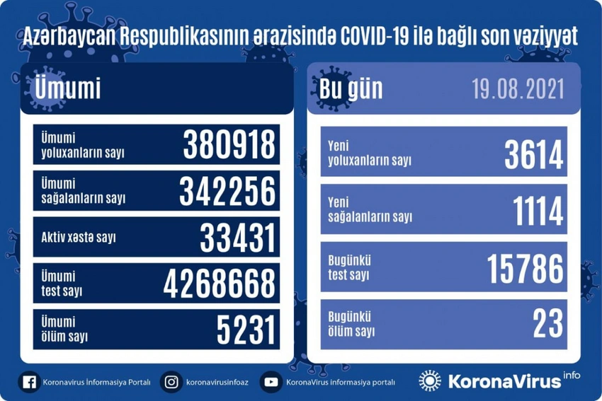 В Азербайджане за сутки коронавирусом заразились 3 614 человек, 23 скончались