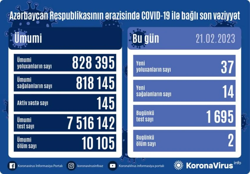 В Азербайджане за последние сутки зарегистрировано 37 новых случаев заражения коронавирусной инфекцией (COVID-19), 14 человек излечились.