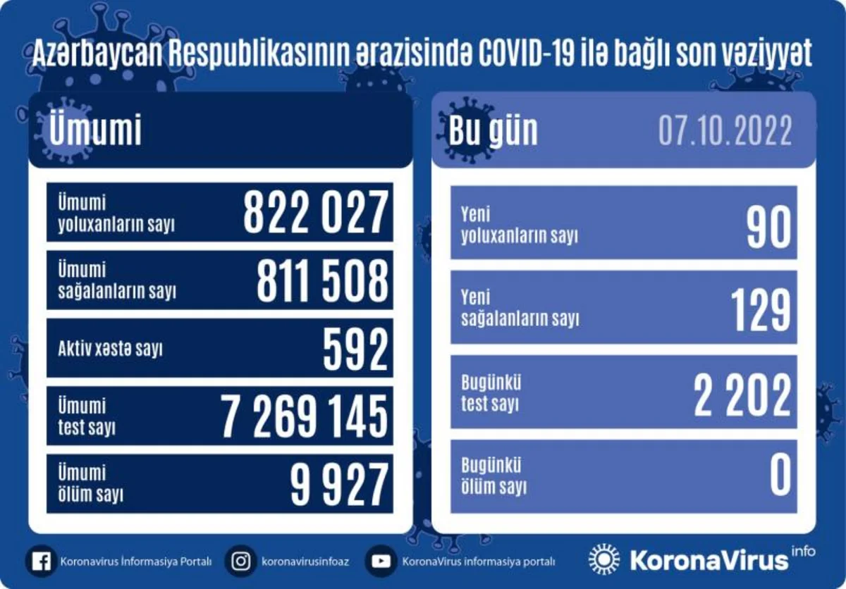 В Азербайджане за минувшие сутки выявлено 90 новых случаев заражения коронавирусом, 129 человек вылечились.