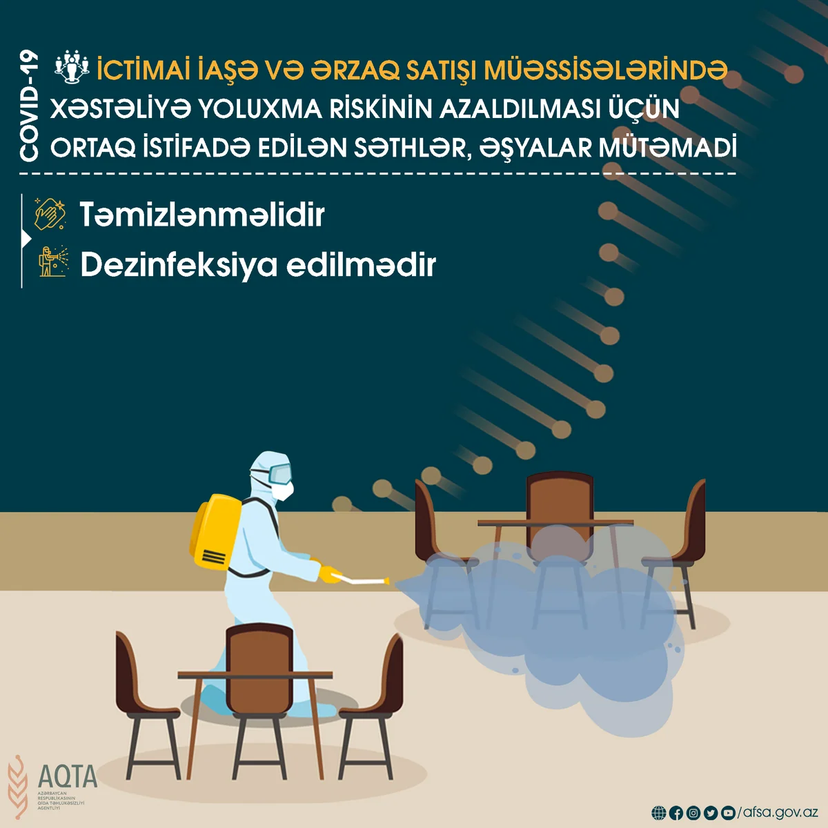 Qeyd edək ki, AQTA Bakıda, eləcə də regionlarda fəaliyyət göstərən ictimai iaşə obyektlərində yoxlama-nəzarət tədbirlərini davam etdirir və Nazirlər Kabinetinin qərarı ilə təsdiq edilmiş metodiki göstərişlərə əməl etməyən sahibkarlıq subyektləri barədə ən sərt tədbirlər görüləcəkdir.