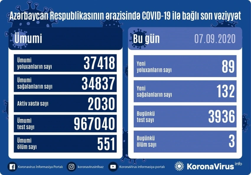 Son sutka ərzində yeni yoluxma hallarının müəyyənləşdirilməsi ilə əlaqədar 3 936, bu günə qədər isə ümumilikdə 967 040 test icra olunub.
