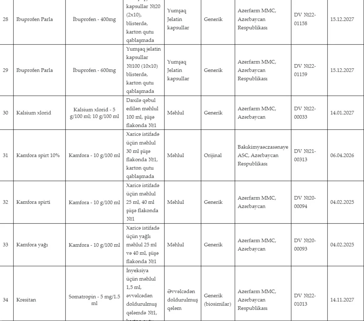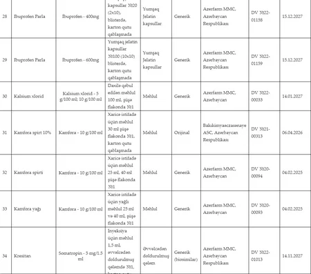 Azərbaycanda istehsal olunan dərman vasitələrinin siyahısı təsdiqlənib.