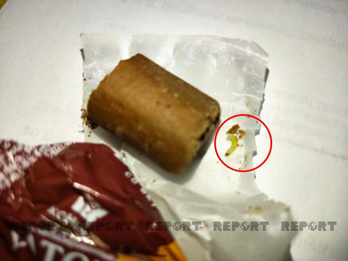 Bildirib ki, paytaxtın Xətai rayonu, Süleyman Vəzirov küçəsində yerləşən supermarketlərin birindən aldığı şokoladı yeyərkən onun qurdlandığını görüb: "Noyabrın 2-də supermarketdən “Konfil Batonçik ASSO” adlı yarım kiloqram şokolad aldım. Şokoladı yeyən zaman birinin içərisindən qurd çıxdı. Dərhal digər şokoladları da açıb baxdım, o birilər də köhnəlmiş, ovulub tökülürdü. İstehsal və son istifadə tarixini nə qədər axtardıqsa da, tapa bilmədik”.