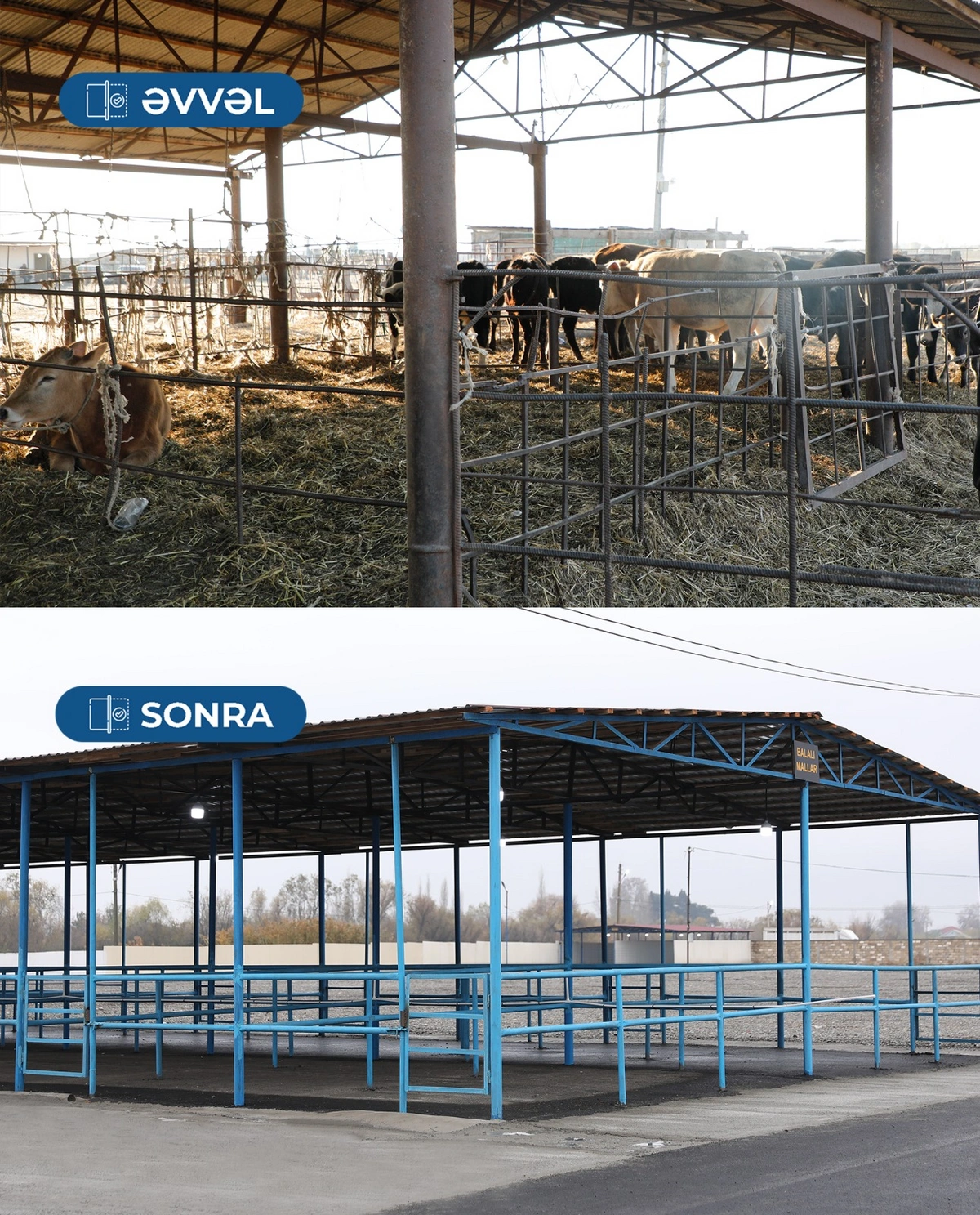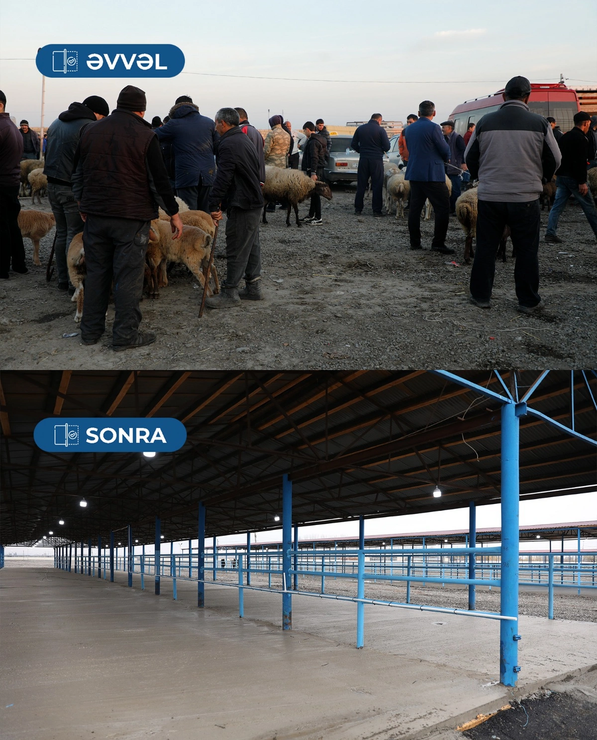 Bildirilib ki, bazarın girişində baytarlıq nəzarəti məntəqəsi tikilib, dezbaryer quraşdırılıb. Bundan başqa, heyvanlara baxış platformaları inşa edilib. Çardaqlar və satış pavilyonları qurulub. Ərazidə asfaltlama və betonlama işləri görülüb. Heyvanlar üçün su və yemlə təminat yaxşılaşdırılıb. Tullantıların daşınması və digər tələblərə uyğun şərait yaradılıb.