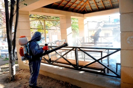 Bu il artıq 18-ci dəfə olmaqla paytaxtdakı əsas küçə, prospekt və yollarda gücləndirilmiş dezinfeksiya işlərinə kommunal təsərrüfat xidmətlərinin 40 ədəd xüsusi texnikası və 2 000 nəfər əməkdaşı cəlb edilib.