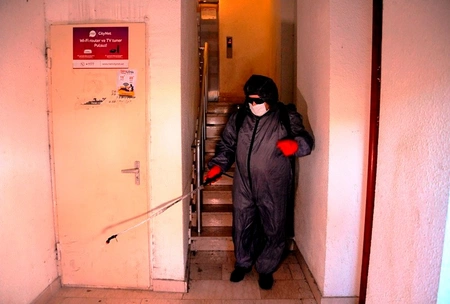 Küçələrdə aparılan dezinfeksiya işləri ilə yanaşı, Bakı Şəhər Mənzil-Kommunal Təsərrüfatı Departamentinin əməkdaşları xüsusi qrafikə uyğun Departamentin balansında olan yaşayış binalarında, lift kabinalarında, həyət və yaşayış məhəllələrində, buradakı idman-əyləncə qurğularında, məişət tullantılarının atıldığı konteyner meydançalarında tibbi-profilaktik və dezinfeksiyaedici tədbirləri davam etdirirlər.