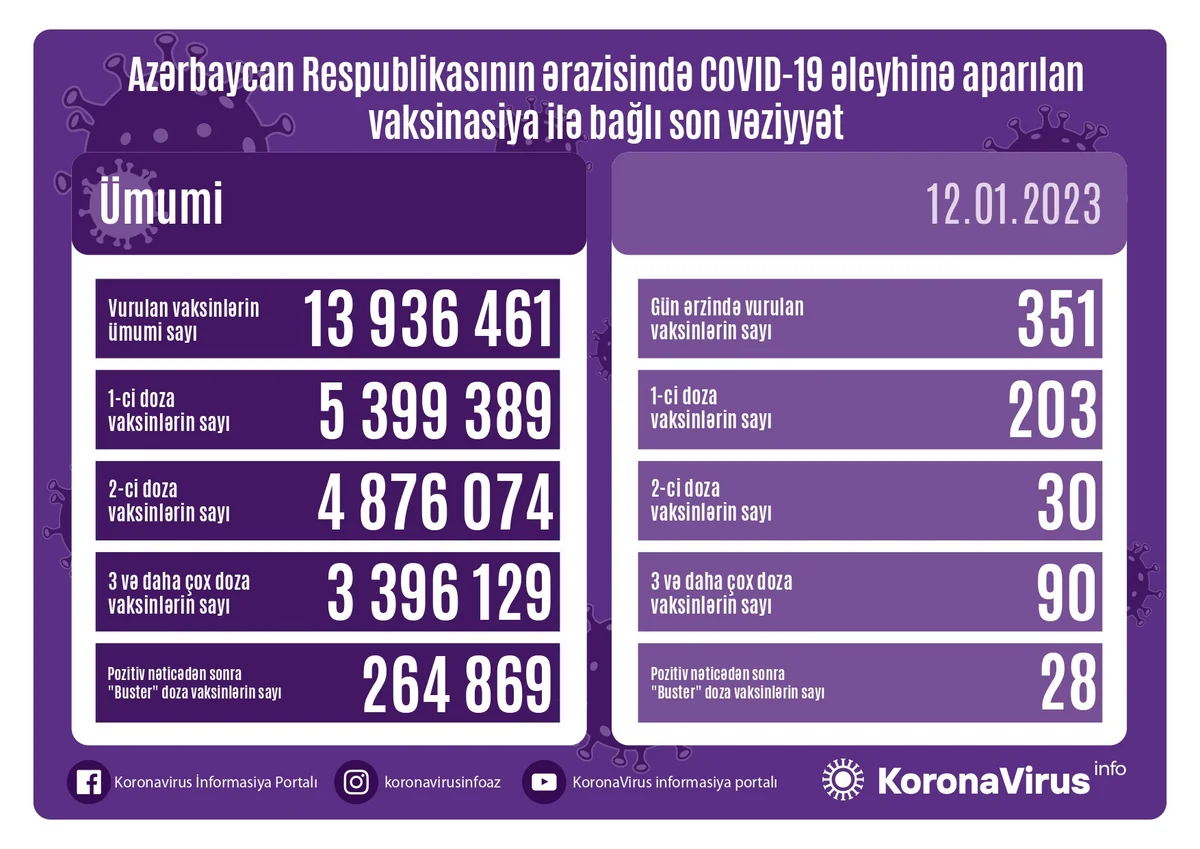 Bununla da bu günədək vurulan vaksinlərin ümumi sayı 13 936 461 olub.