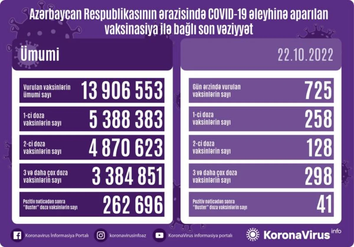 Azərbaycanda son gündə koronavirus əleyhinə 725 vaksin vurulub.