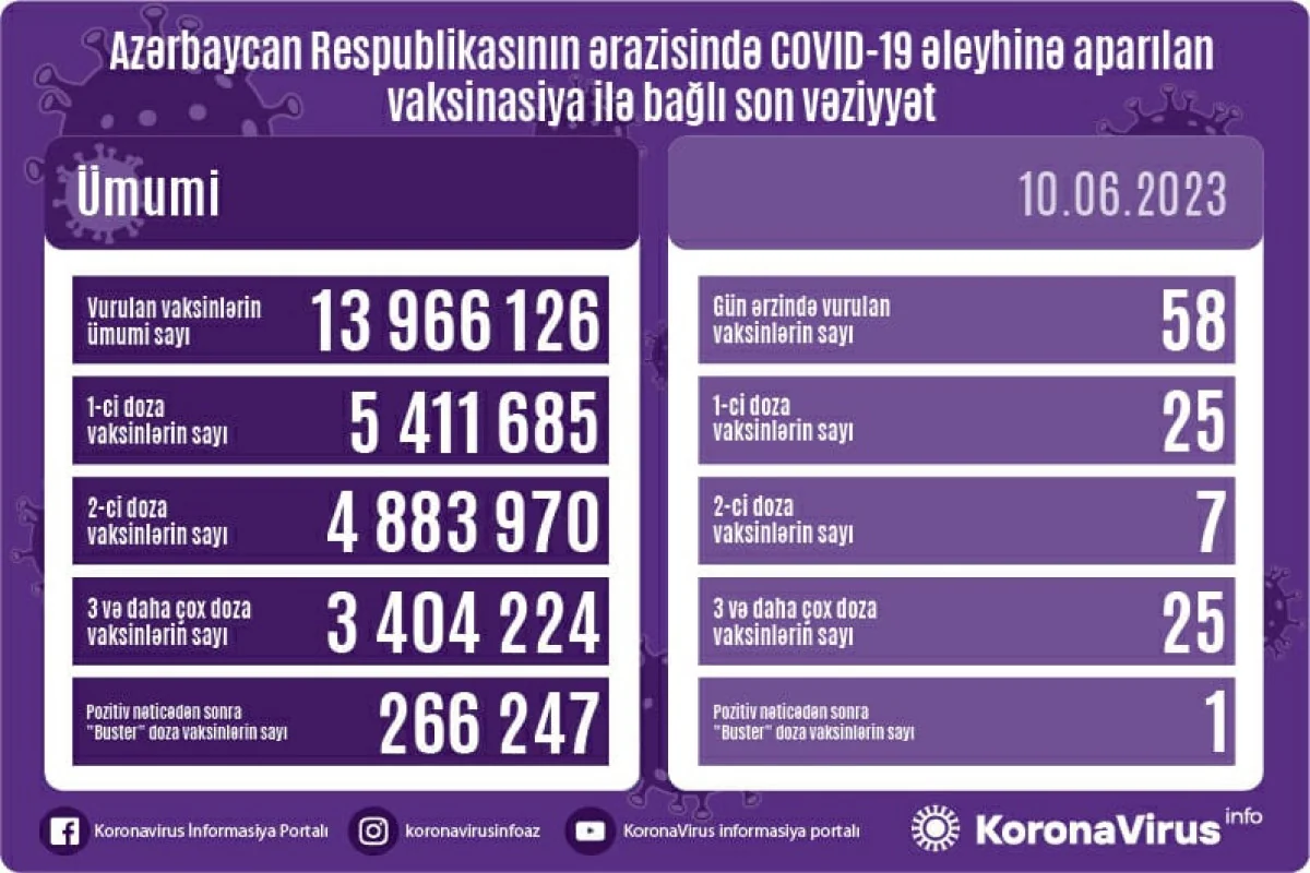 Azərbaycanda son sutka ərzində koronavirus (COVID-19) infeksiyasına yoluxanların və peyvənd olunanların sayı açıqlanıb.