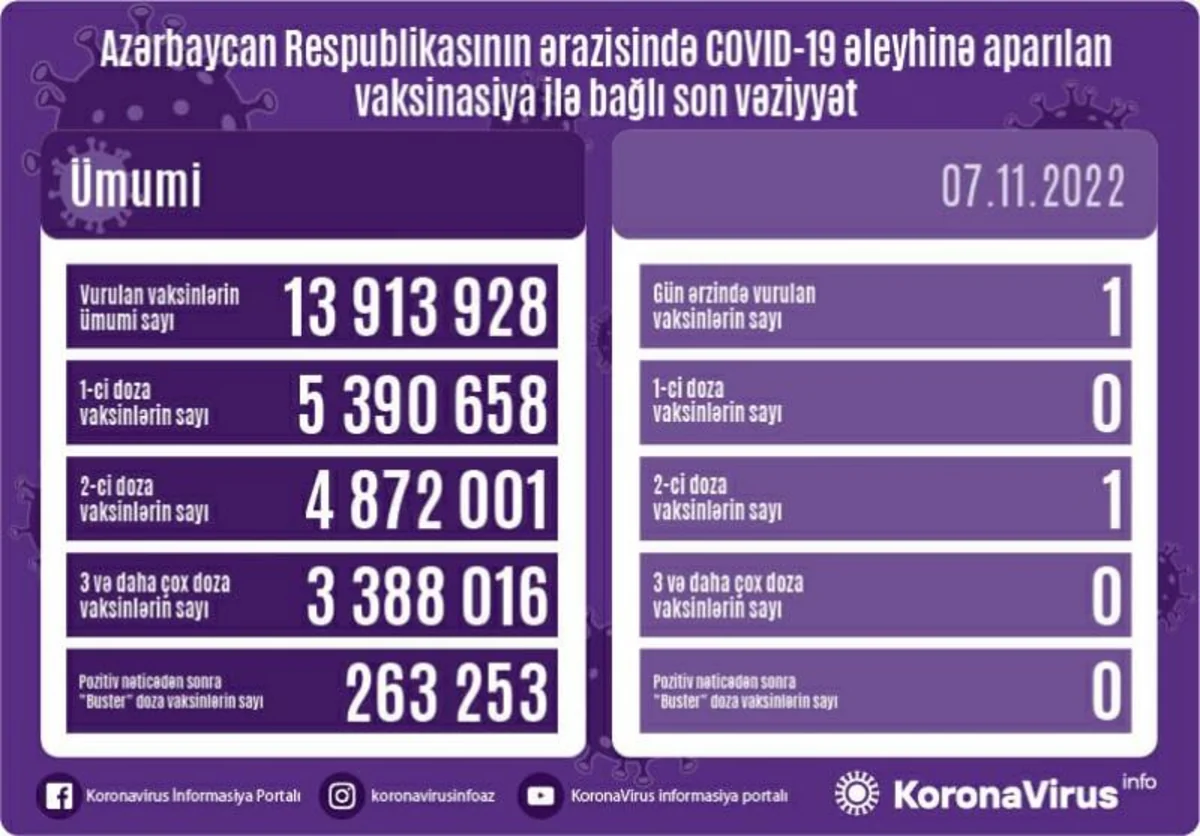 Azərbaycanda bu günə qədər vurulan vaksinlərin ümumi sayı 13 913 928 olub.