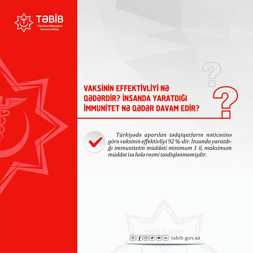 "İnsanda yaratdığı immunitetin müddəti minimum 1 il, maksimum müddət isə hələ rəsmi təsdiqlənməyib", - məlumatda qeyd olunub.