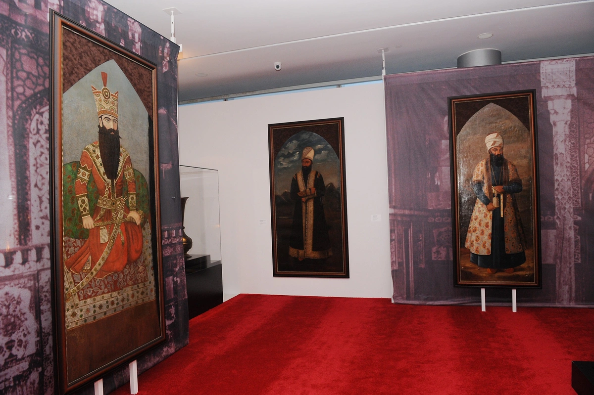 Sərgidə Qacarlar epoxasına aid qədim incəsənət nümunələrinin əksəriyyəti Fətəli şah dövrünə aid dünyaca məşhur yağlı boya rəsmləri, miniatürlər, keramika, metal məmulatları, tekstil və xalçalarla təqdim edilir. Təsvirin gücünü yaxşı bilən Fətəli şah nüfuzunu və nailiyyətlərini nümayiş etdirmək üçün memarlıq, rəsm və dekorativ sənətdən geniş istifadə edirdi. Sərgidə Fətəli şahın özünün portreti də yer alıb.