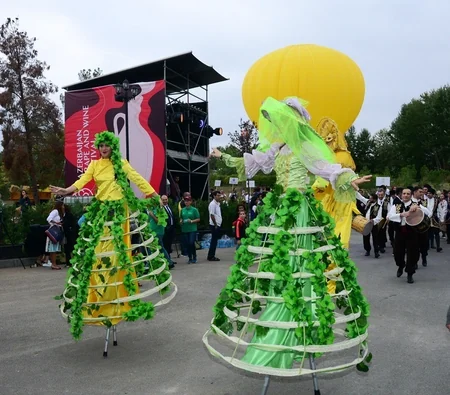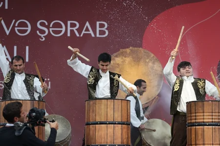 "Report" AZƏRTAC-a istinadən xəbər verir ki, qonaqları şərabçılıqla bağlı al-əlvan geyimli müxtəlif personajlar qarşılayıblar.