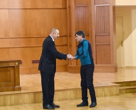 Sonra dövlət başçısı birdəfəlik ödəməni almaq üçün istifadə olunan plastik kartları şəhid hərbi qulluqçularının vərəsələrinə təqdim edib.