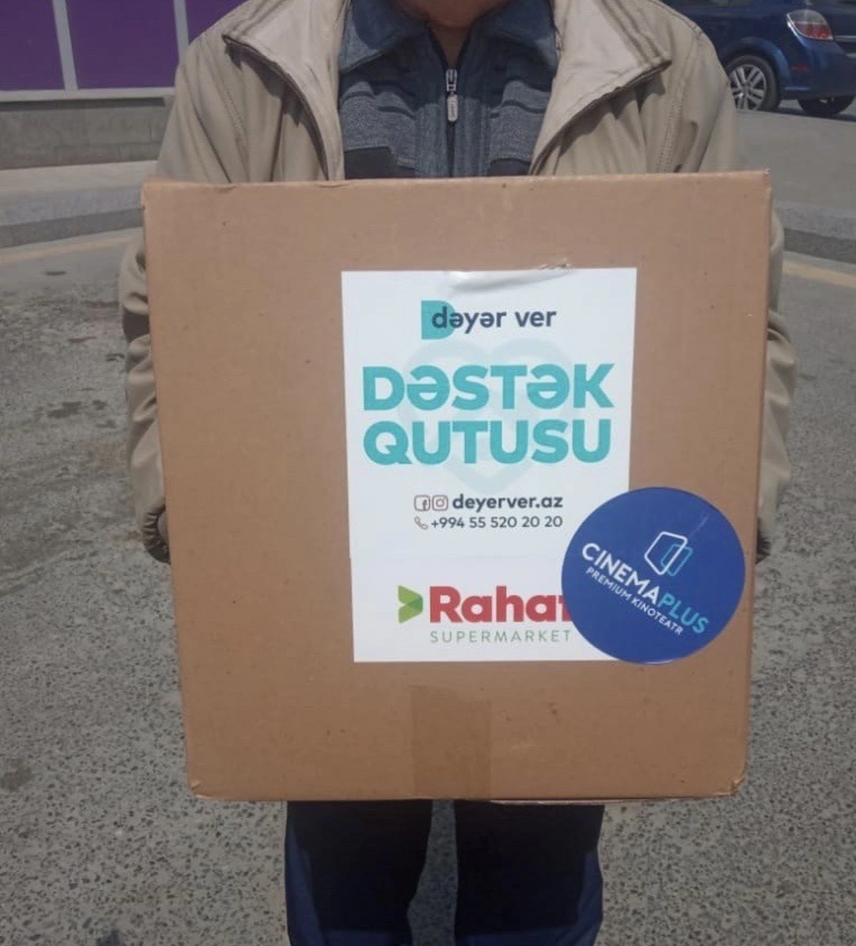 “CinemaPlus” kinoteatrlar şəbəkəsi “Rahat” supermarketlər şəbəkəsindən 100 ədəd “Dəstək Qutusu” alaraq ehtiyacı olan yaşlılara, çoxuşaqlı ailələrə və işsiz ailələrə “Dəyər ver-dəstək ol!” aksiyasına qoşulub.