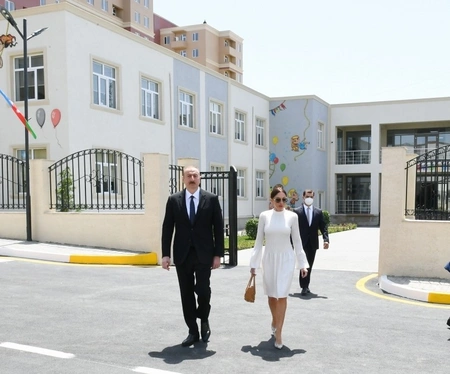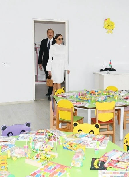 Prezident İlham Əliyev və birinci xanım Mehriban Əliyeva uşaq bağçasında yaradılan şəraitlə tanış olublar.