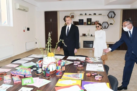 Dövlət başçısı və birinci xanım kompleksdə inşa olunan Füzuli rayon 4 saylı tam orta məktəbində yaradılan şəraitlə də tanış olublar.