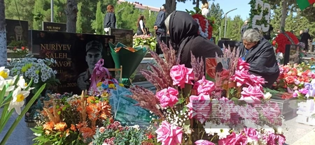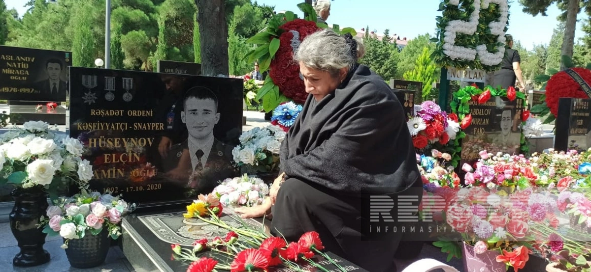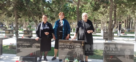 Sonda mərasim iştirakçıları, valideynlər şəhidlərin məzarlarını ziyarət edərək üzərinə gül dəstələri düzüblər.