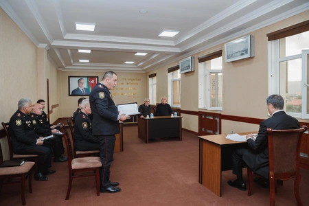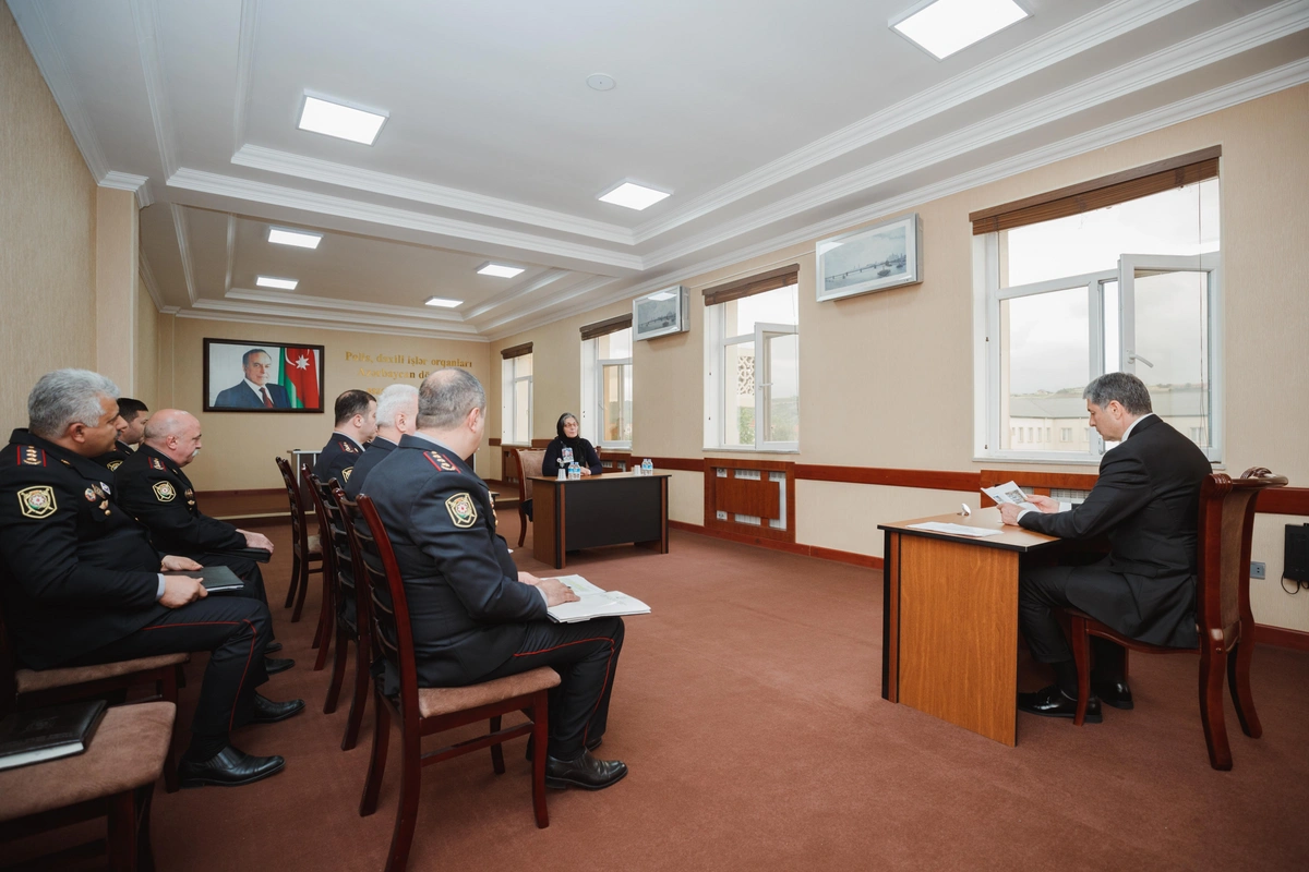 Daha sonra general-polkovnik V.Eyvazov şimal bölgəsi üzrə polis orqanlarında sıravi və kiçik rəis heyətinə xidmətə qəbulla bağlı sıra baxışı keçirib.