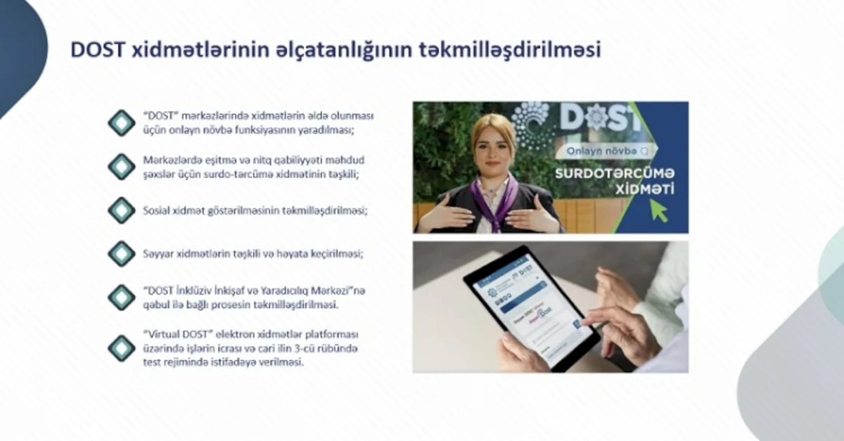 Məlumatda bildirilib ki, “DOST” xidmətlərinə əlçatanlığın artırılması üçün yeni hədəflərə doğru işlər aparılır: