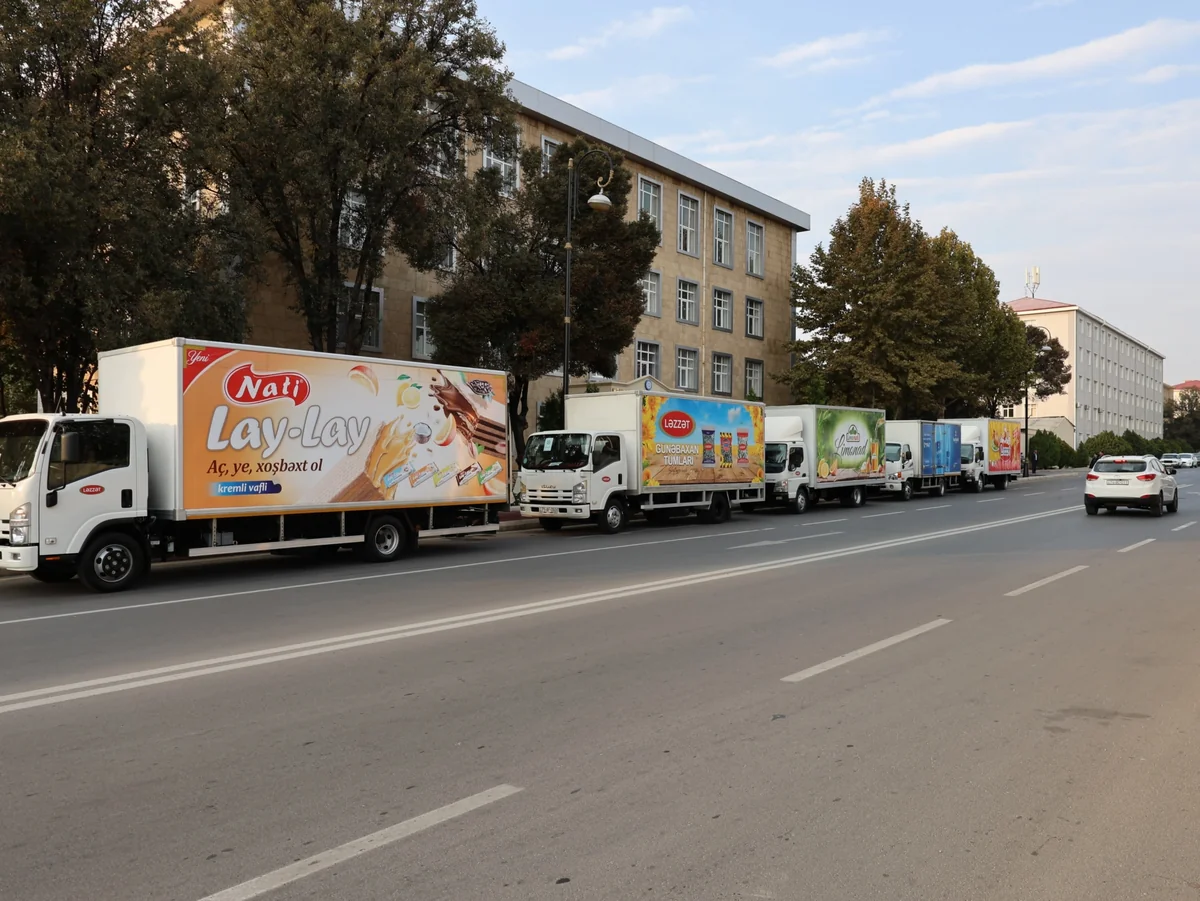 Sovqatlardan ibarət 5 avtomobil təyinatı üzrə ünvanlara yola salınıb.