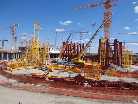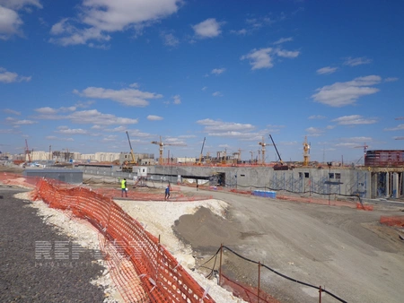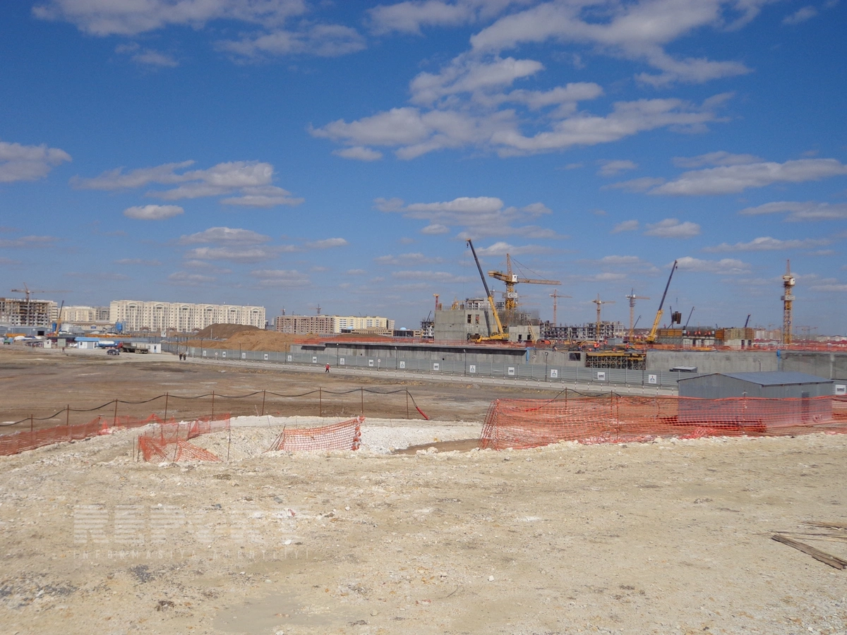 Bu günə qədər 30% obyektlərin tikintisi başa çatıb. İlin sonunadək obyektlərin divar və damlarının tikintisinin tamamlanması nəzərdə tutulub, bundan sonra daxili tamamlanma işləri həyata keçiriləcək. İşi vaxtında təhvil vermək üçün burada 4500-ə yaxın insan və 60 qaldırıcı kran çalışır. Obyektlərin tikintisinə Qazaxıstanın büdcəsindən 3 mlrd. dollar vəsait ayrılıb, 1 mlrd. dollar isə birbaşa olaraq digər ölkələr tərəfindən yatırıb.
