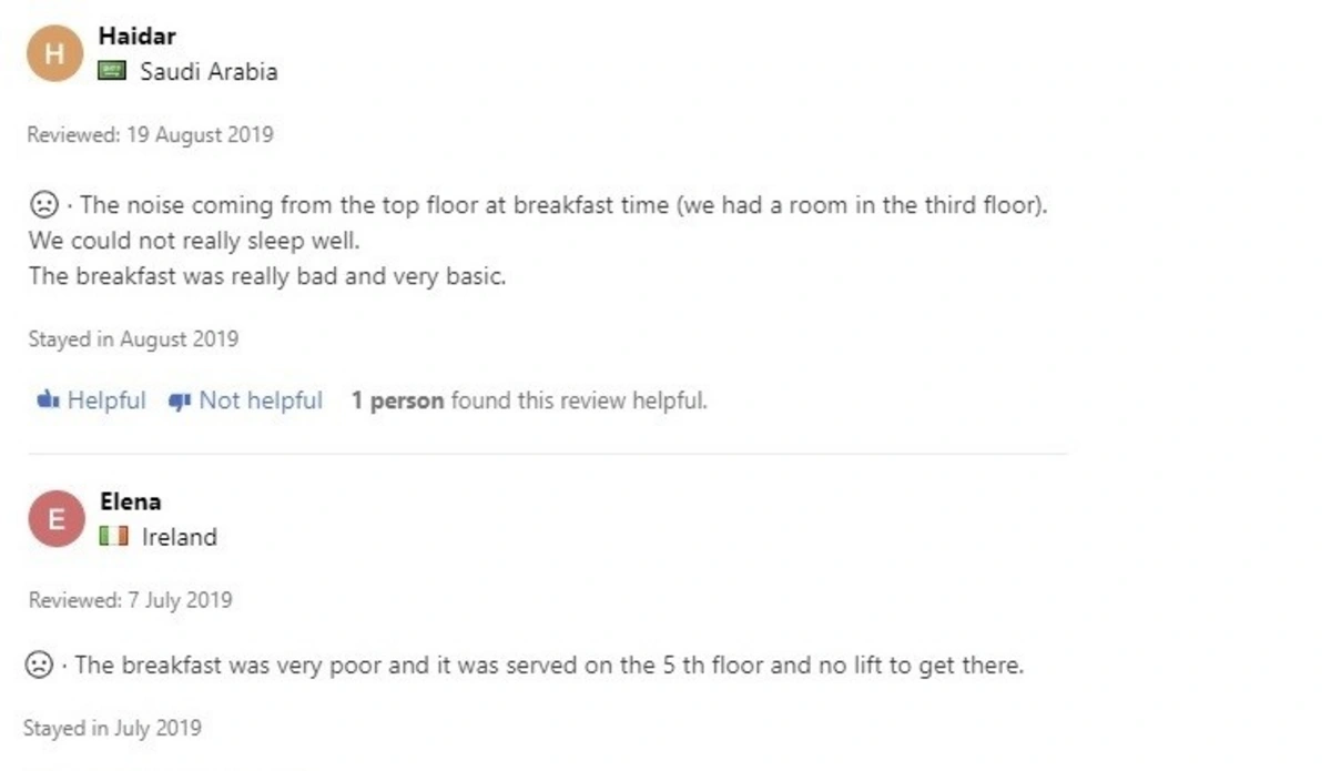 Otel sifarişi üzrə ixtisaslaşmış dünya üzrə məşhur booking.com saytında da sözügedən hotellə bağlı xeyli sayda xoşagəlməz rəy var. Belə ki, bu yay nömrə götürən turistlər səhər yeməyinin çox zəif olmasını, yemək verilən beşinci mərtəbədəki terrasa qalxmaq üçün isə liftin işləməməsini qeyd ediblər.
