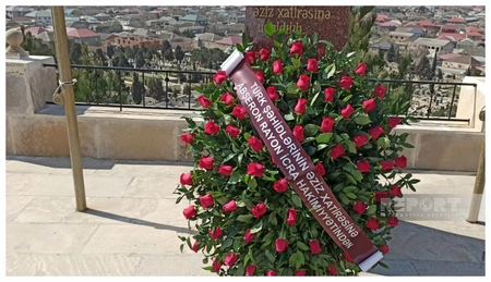 Abidənin və naməlum türk əsgərinin məzarı üzərinə əklil və gül dəstələri düzülüb.