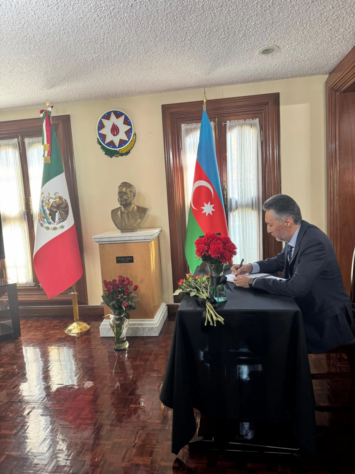 “Azərbaycan Hava Yolları”nın Bakı-Qroznı reysini yetirə yetirən sərnişin təyyarəsinin Aktau şəhəri yaxınlığında qəzaya uğraması nəticəsində çoxsaylı insan tələfatı ilə əlaqədar ölkəmizin Meksika Birləşmiş Ştatlarında, eləcə də Kolumbiya və Peru Respublikalarındakı Səfirliklərində başsağlığı kitabları açılıb, dövlət bayraqları endirilib.