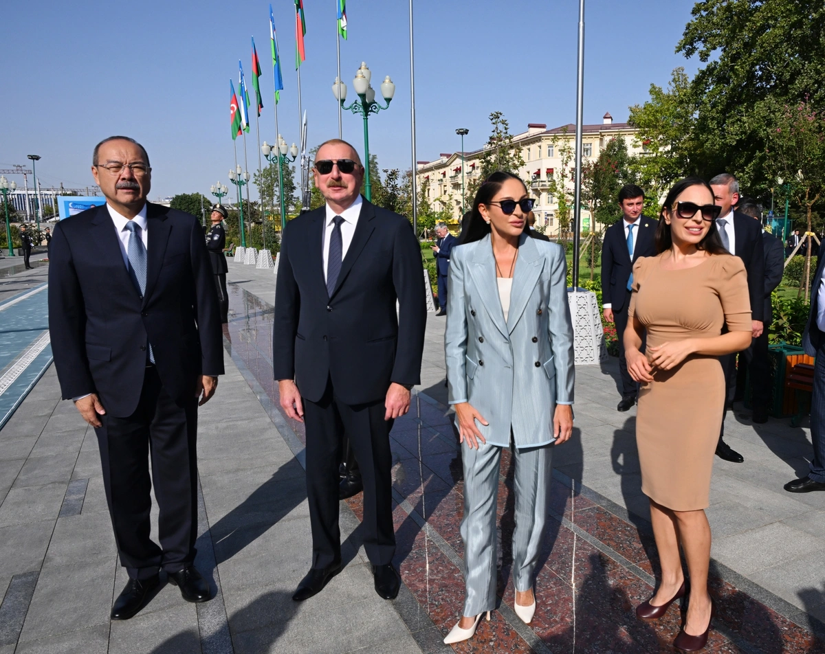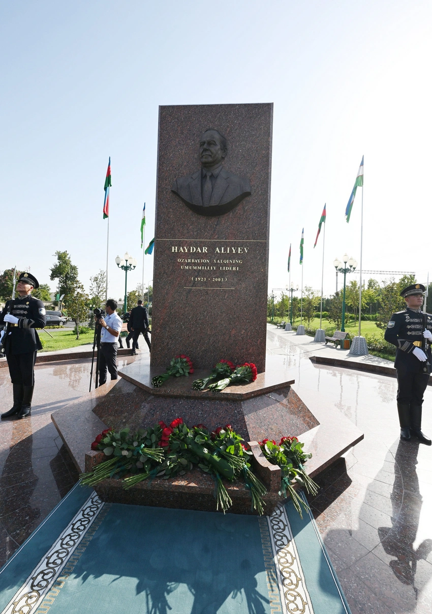 Azərbaycan Respublikasının Prezidenti İlham Əliyev, birinci xanım Mehriban Əliyeva və qızları Leyla Əliyeva avqustun 22-də Daşkənddəki Heydər Əliyev Meydanında Ümummilli Liderin barelyefi önünə gül dəstələri qoyublar.