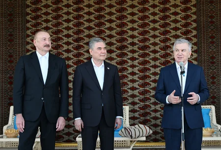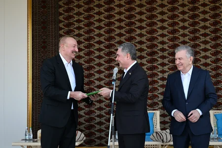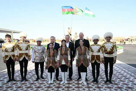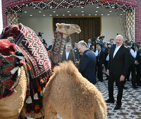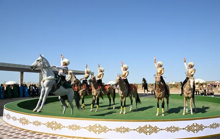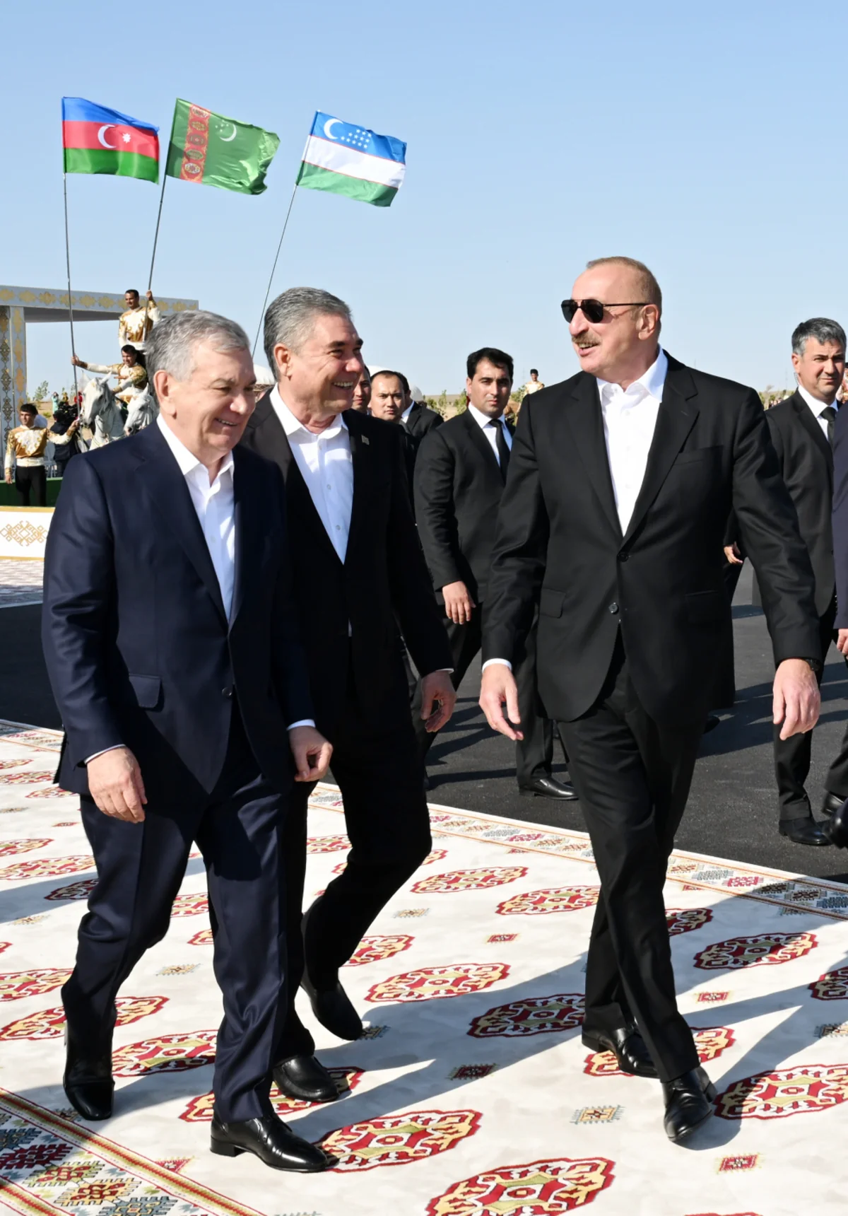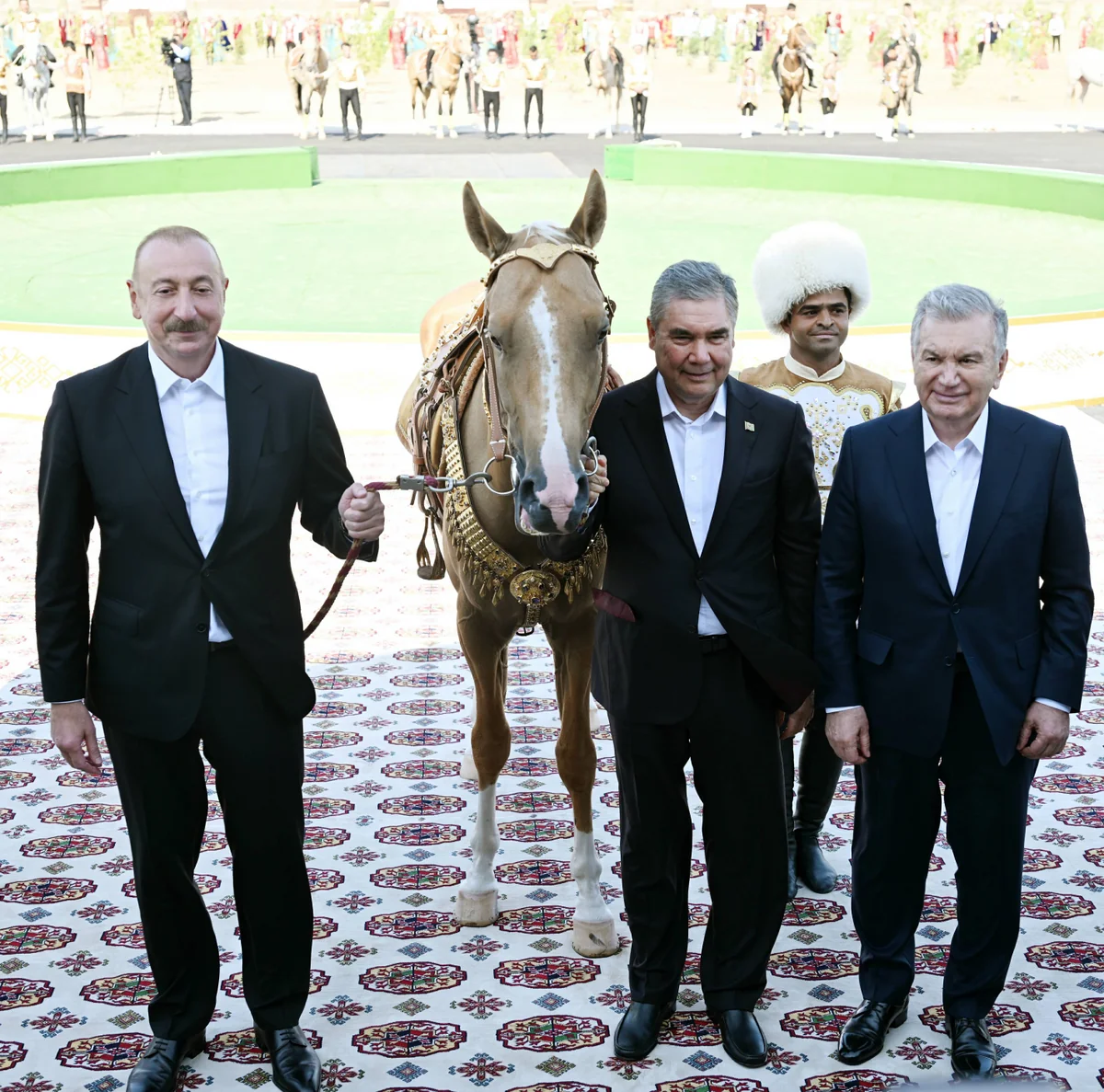 Azərbaycan Prezidenti İlham Əliyev, Türkmənistan Xalq Məsləhətinin sədri Qurbanqulu Berdiməhəmmədov və Özbəkistan Prezidenti Şavkat Mirziyoyev avqustun 22-də Türkmənbaşı şəhərində “Axaltəkə” atlarına və milli “Galkynysh” atlı qrupunun çıxışına baxıblar.