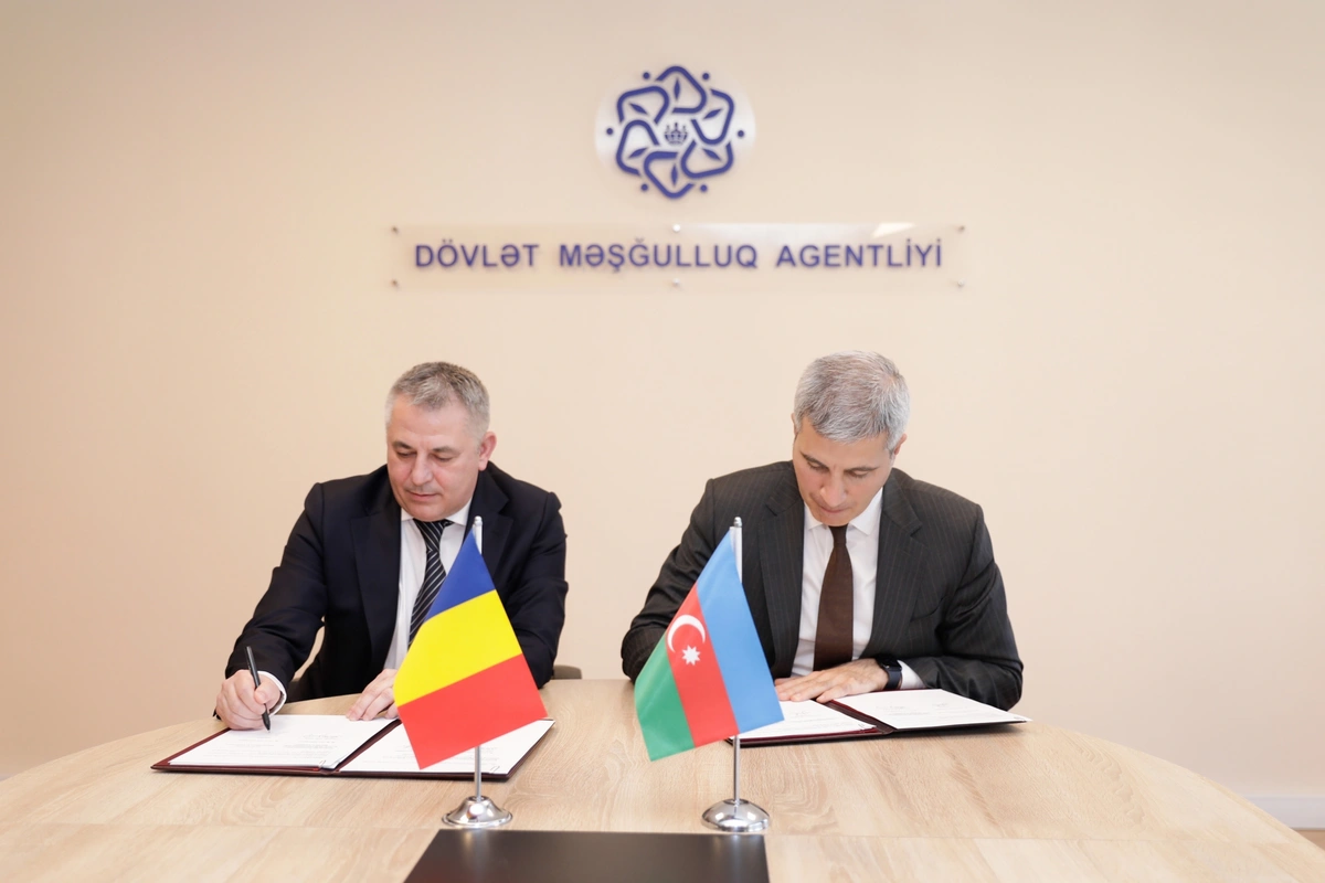 Dövlət Məşğulluq Agentliyinin İdarə Heyətinin sədri Mustafa Abbasbəyli və Rumıniyanın Məşğulluq üzrə Milli Agentliyinin prezidenti Florin-Irinel Cotoşman iki qurum arasında əməkdaşlığa dair Anlaşma Memorandumu imzalayıblar.