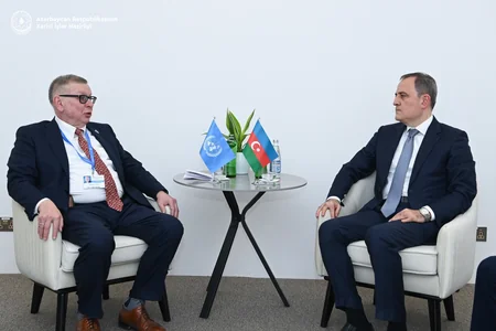 Azərbaycan Respublikasının xarici işlər naziri Ceyhun Bayramov BMT-nin İqlim Dəyişmələri üzrə Çərçivə Konvensiyasının Tərəflər Konfransının 29-cu sessiyası (COP29) çərçivəsində BMT Baş katibinin qanunun aliliyi və təhlükəsizlik institutları üzrə köməkçisi Aleksandr Zuyev ilə görüşüb.