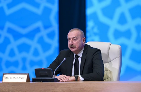 Ötən ilin sentyabr ayında biz ərazi bütövlüyümüzü, suverenliyimizi tam bərpa edəndən sonra Ermənistanın dırnaqarası qarantorları tərəfindən siyasi hücumlara məruz qaldıq. Buna baxmayaraq, biz yenə sülh təklif etdik. İndi isə biz, əslində, müsbət tendensiyaya və sülhə doğru gedirik, sərhədlərin delimitasiyası başlayıb. Nəinki delimitasiyası, hətta demarkasiyası başlayıb. Mən burada çıxış etdiyim zaman bu iş gedir. Buna iki ölkə tərəfindən hər hansı bir vasitəçi olmadan nail olunub. Bu, bir daha onu göstərir ki, bizə vasitəçi lazım deyil. Xüsusən də o insanlar ki, məhz öz məqsədlərini güdürlər və yardım etmək istəmirlər. Onlar bizim bölgəyə öz fərdi, siyasi və iqtisadi maraqları naminə müdaxilə etmək istəyirlər. Onlar həmin alova yenidən odun atmaq istəyirlər. Biz Cənubi Qafqazda buna icazə verməyəcəyik, imkan verməyəcəyik. Otuzillik toqquşmadan sonra Ermənistan da aydın şəkildə anlayır ki, biz Cənubi Qafqazda sülh istəyirik və sülh bu bölgədə yalnız Azərbaycanla Ermənistan arasında normallaşma vasitəsilə həll oluna bilər.