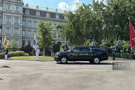ABŞ Prezidenti Donald Tramp Azərbaycan Prezidenti İlham Əliyevi Ağ Evdə rəsmi şəkildə qarşılayıb.