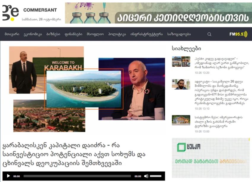 “Report”un yerli bürosu xəbər verir ki, bu barədə Gürcüstanın “Kommersant” (www.commersant.ge) biznes nəşrinin “Kapital Qarabağa yönəlir - işğala son qoyularsa, Suxumi və Tsxinvalinin investisiya potensialı necə olar” başlıqlı məqaləsində yazılıb.