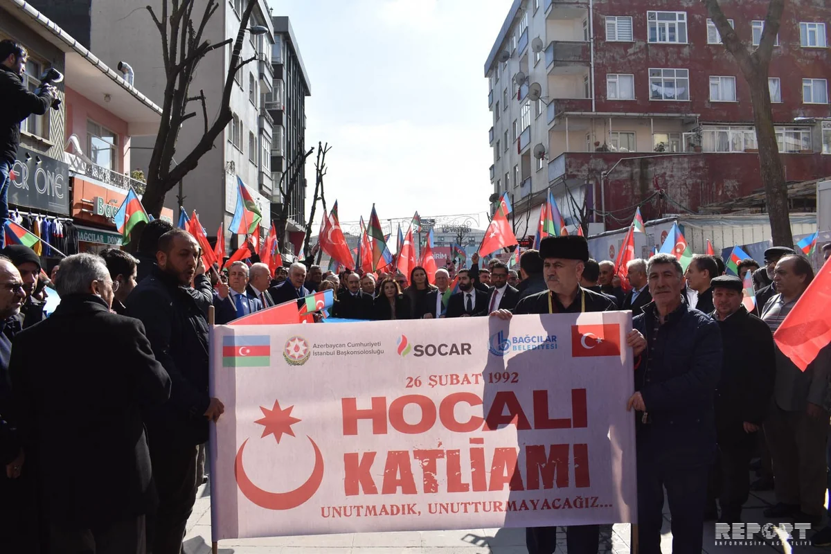 “Report”un Türkiyə bürosu xəbər verir ki, Azərbaycanın bu şəhərdəki Baş Konsulluğu və İstanbulun Bağcılar Bələdiyyəsinin təşkilatçılığı ilə baş tutan izdihamlı yürüşün iştirakçıları şəhərin Bağcılar rayonunun mərkəzi meydanından başlayaraq rayon ərazisində yerləşən Azərbaycan Dostluq parkına doğru hərəkət ediblər.