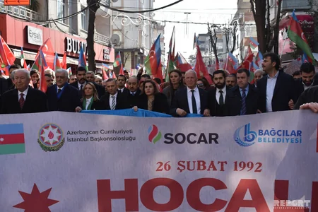 İstanbul. 26 fevral. REPORT.AZ/ İstanbul şəhərində Xocalı faciəsinin 27-ci il dönümü ilə əlaqədar yürüş keçirilib.