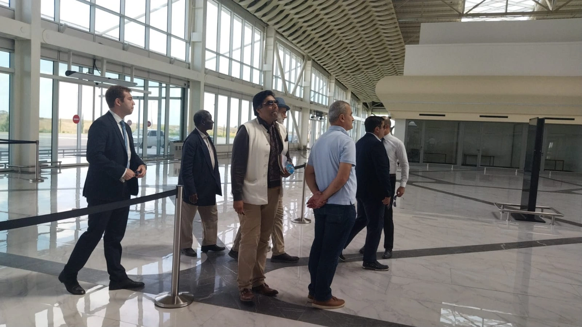 Qonaqlara məlumat verilib ki, Füzuli işğaldan azad edildikdən sonra, Füzuli Beynəlxalq Hava Limanı minatəmizləmə işləri də daxil olmaqla 8 ay ərzində, müasir tələblərə cavab verən səviyyədə inşa edilib. O da qeyd edilib ki, işğaldan azad olunmuş ərazilərdə 3 beynalxaq hava limanı inşa edilib. Bunlardan 2-i - Füzuli və Zəngilan beynəlxalq hava limanlari istifadəyə verilib. Laçın beynəlxalq hava limanında isə son tamamlama işləri aparılır.